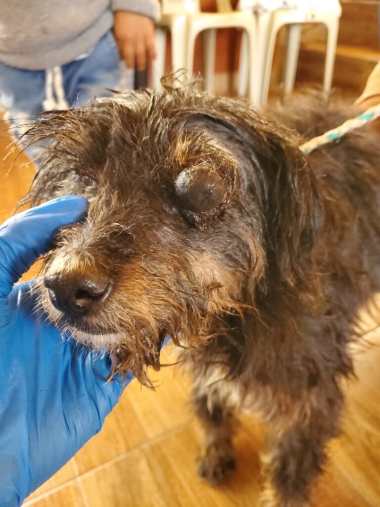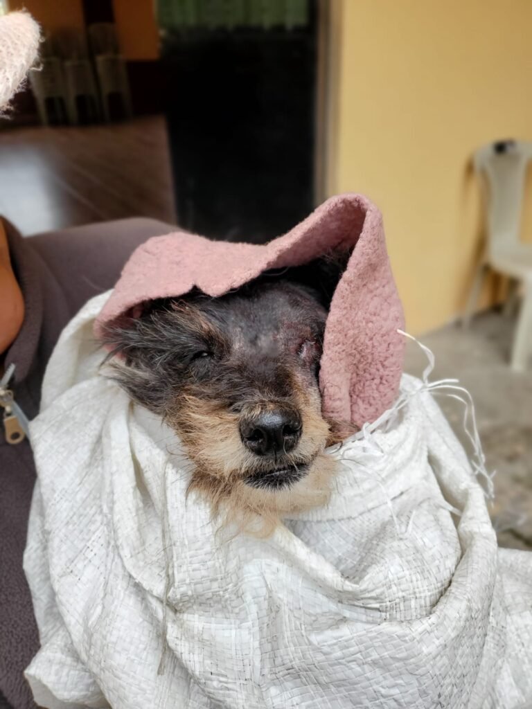 Growing on the left side of her head was a large, swollen mass โ dark, taut, and clearly causing her significant pain. Her eye on that side was swollen shut. She was exhausted in the way only animals in chronic pain become exhausted: not dramatic, just… done.